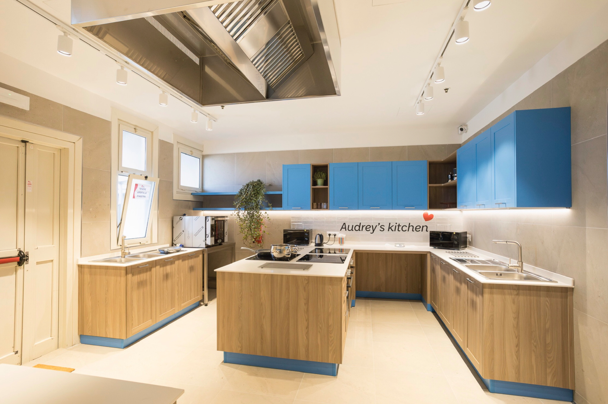 Lo spazio è stato denominato “Cucina di Audrey” in memoria di Audrey Evans un'oncologa pediatrica americana di origine britannica, nota come la "Madre del Neuroblastoma", La dottoressa, ha per prima ha messo in evidenza che per ogni bambino malato occorre prendersi in carico anche la sua famiglia creando degli spazi dove possano abitare vicini ai luoghi di ricovero. La Dott.ssa Evans è stata una delle co-fondatrici della Ronald McDonald House di Filadelfia.